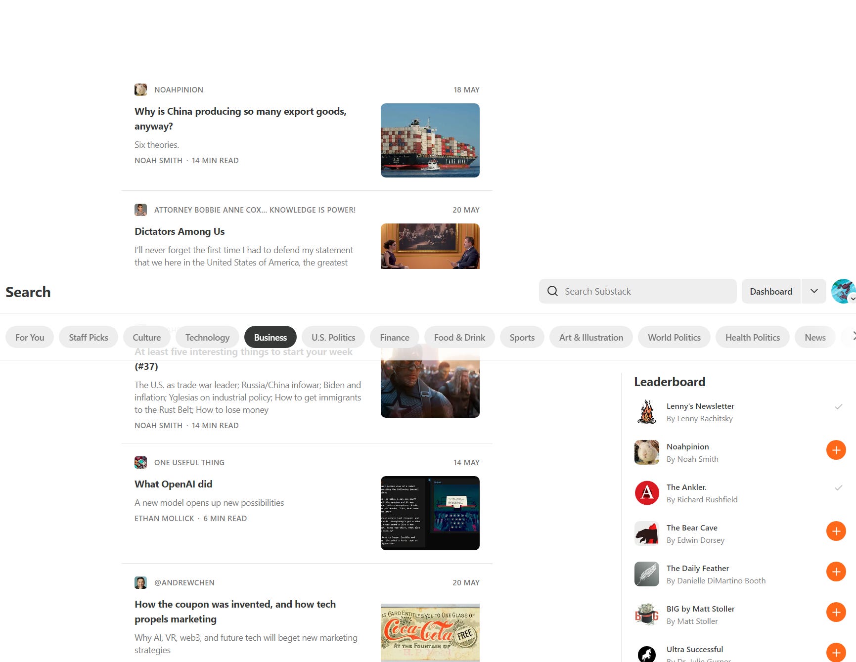 Tiene la opción de dos categorÃas cuando configura su Substack. Puede cambiarlas en cualquier momento. (En realidad, la principal categorización se produce mediante tags -pero no tengamos muchos, o nuestra página de configuración será todavÃa mucho más larga- y las secciones, donde es dificil que categoricemos en más de 8 secciones o temas, y donde no parece posible tener subsecciones).